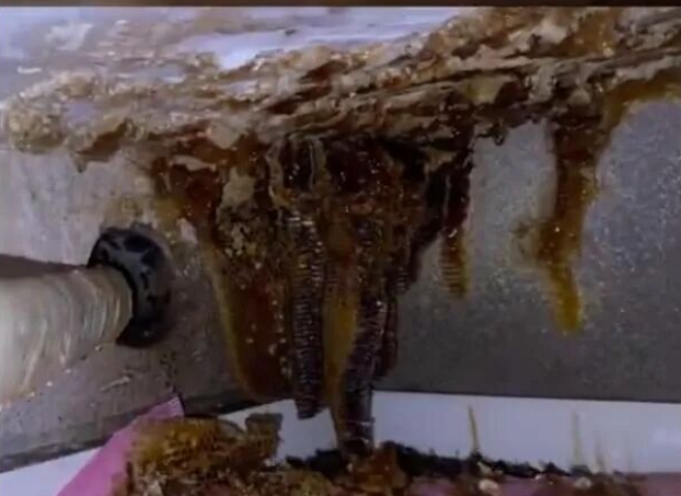 泰州一居民的卫生间吊顶夹层内 一个足足160斤的巨大蜂窝↓