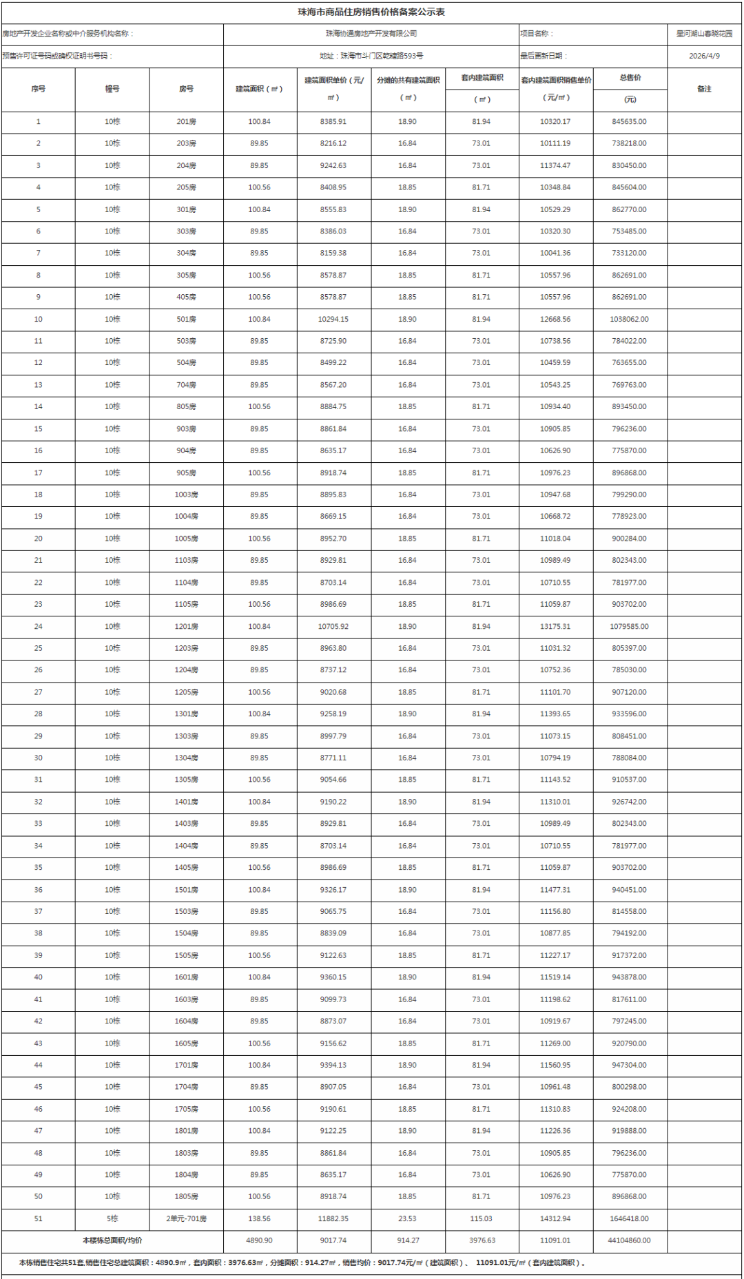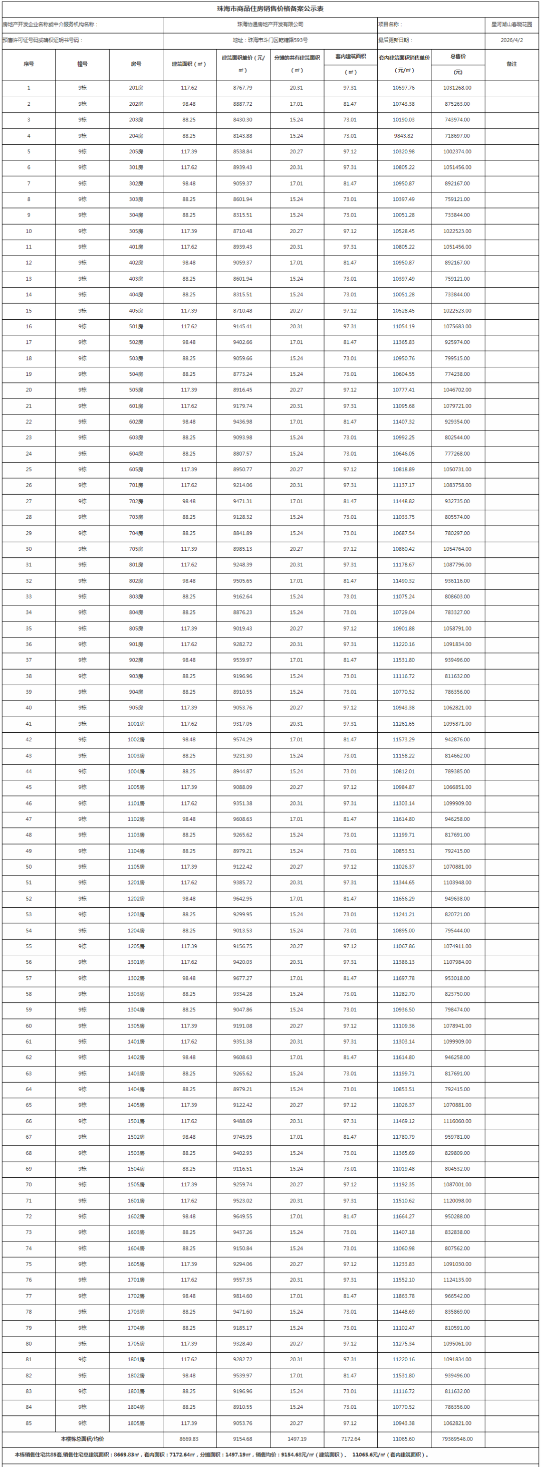 在本次公示的价格备案中,横琴共有1个项目商品房价格备案公示,累计公示11套可销售住宅单位,备案户型80.72-128.37㎡,备案均价39335.94元/㎡,最高备案价42472.55元/㎡,最低备案价35399.53元/㎡。