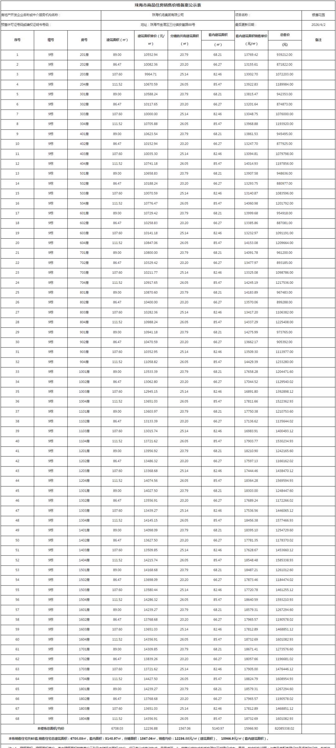 其中,银鹰花园备案68套,备案户型86.47-111.52㎡,备案均价12236.88元/㎡,最高备案价14427.5元/㎡,最低备案价9964.71元/㎡。