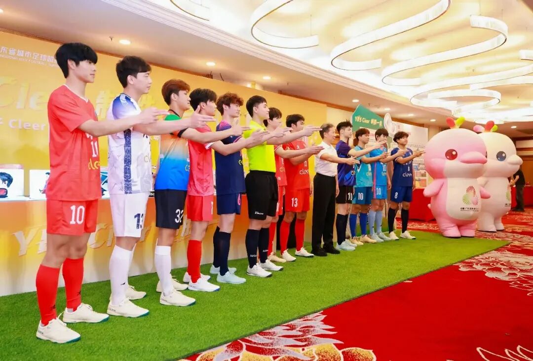 4月13日,2026年广东省城市足球超级联赛新闻吹风会在广州举行,广东21个地市代表队比赛服闪亮登场。方寸球衣,藏一城风骨,上身即战袍,上场即荣光!21名“肌肉男”战袍加身,走起炫酷T台秀,将粤超仪式感拉满。放眼全场,赤、橙、黄、青、蓝、紫等各色球衣交相辉映,将岭南城市的多元气质和现代美学展现得淋漓尽致。而有细心的球迷发现,21支球队主场球衣色彩百花齐放,唯独不见绿色(湛江客场球衣为绿色),这一趣味细节,也让21城球衣发布多了一层话题。