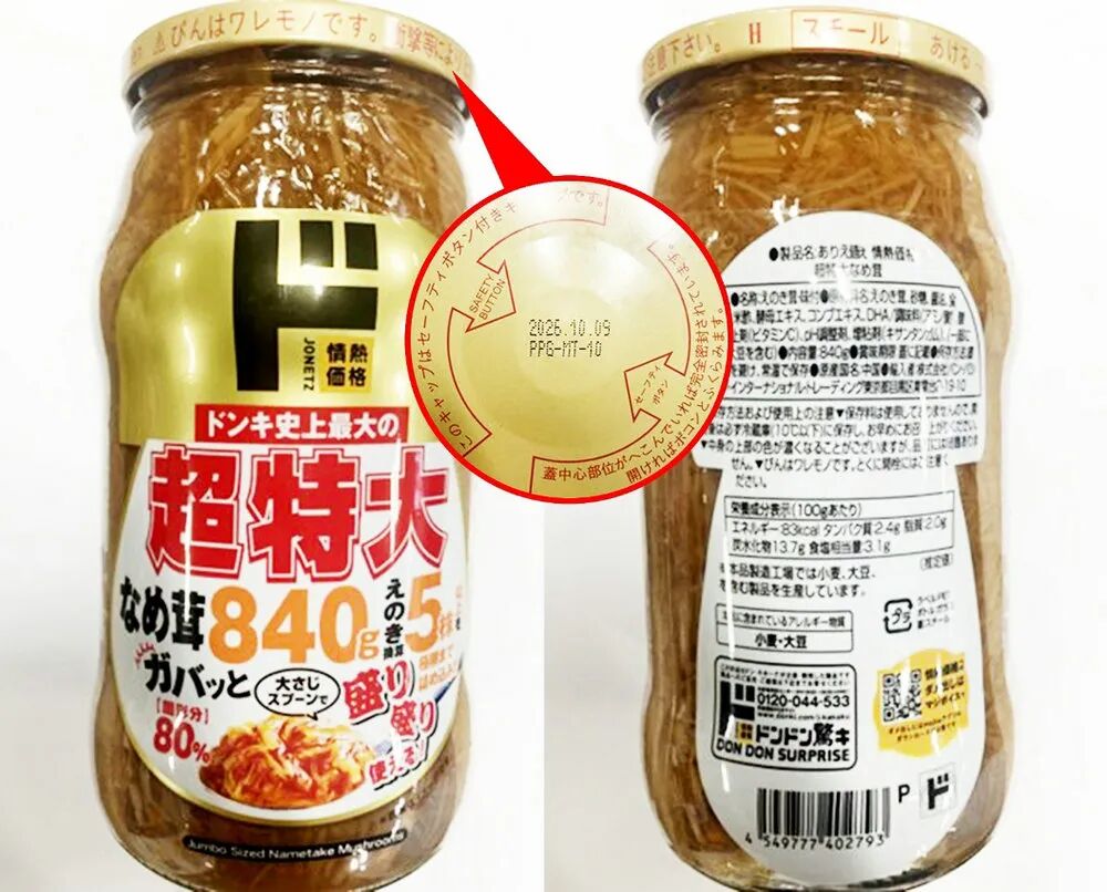 涉事的金针菇产品品牌为“情热価格”,产品名称为“☆ありえ値ぇ情热価格超特大なめ茸”,规格:840克,产品条形码:4549777402793,涉及批次包括以下赏味期限:2026年7月30日、2026年9月22日、2026年9月23日、2026年9月24日、2026年9月25日、2026年10月9日、2026年12月5日、2026年12月7日、2026年12月8日。