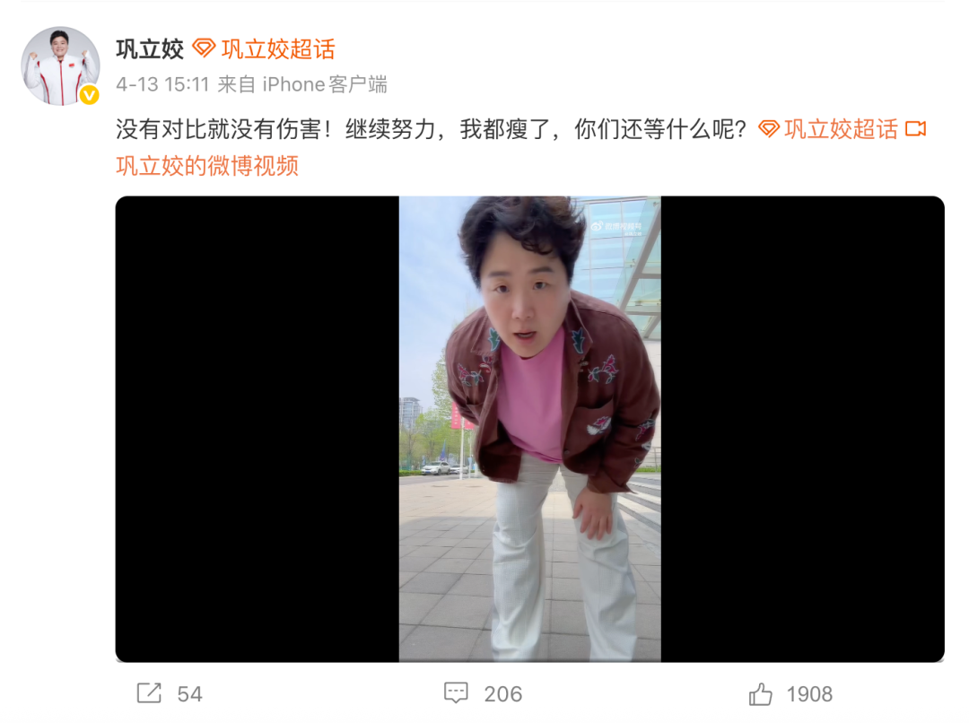 在视频中,巩立姣也提到一句话,就是“把食欲忍住”!