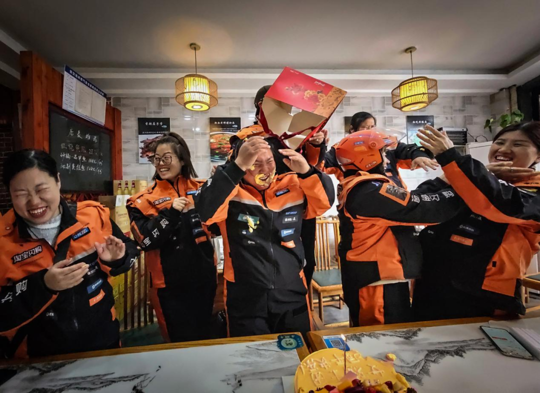 浙江衢山岛是舟山群岛的第五大岛,是距大陆50余公里无大桥相连的孤岛,进出全靠定点航运。如果,在岛上,你想点份外卖,上门的多半是女骑士。淘宝闪购在衢山岛长期送外卖的14名城市骑士中,有9位是女性。今年4月,是这个女骑士队成立的一周年。队员们约在一家常去的餐馆庆祝。曾经,这群随丈夫从安徽、河南等地来的“外地媳妇”,每天除了等丈夫、等孩子、打散工,生活没有太多选择。而现在,这群女人用一辆辆电动车,攥紧了生活的车把。解海龙/摄