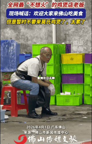 他瘫坐在店门口的塑料凳上,眼神空洞、眉头紧锁,一脸累到脱力的“苦瓜干”模样,面对围上来拍照的食客和举着设备的博主,他脸上挂着的是真情实感的“痛苦面具”。