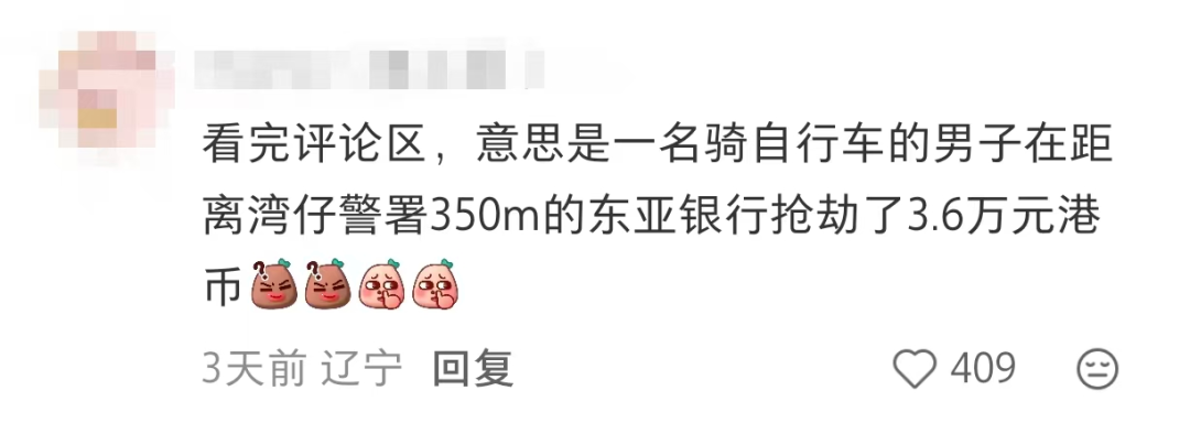 “还专挑一家离警察总部近的银行,生怕警察抓不了他么......”(这家银行距警署仅约300米)