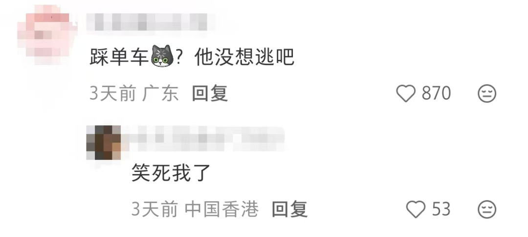 通仔翻评论时看到不少网友调侃:“骑单车抢劫逃跑?怕不是没打算真的逃吧......”