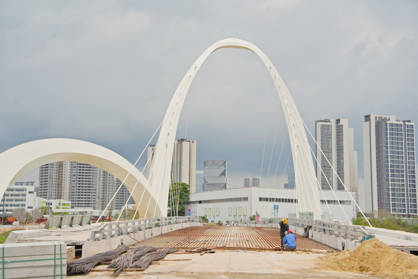横沥岛尖桥梁建设正加速推进,目前中轴涌3号桥、三多涌12号桥等已建成完工;中轴涌4号桥即将收尾;中轴涌1号桥、中轴涌2号桥正加快推进建设中。