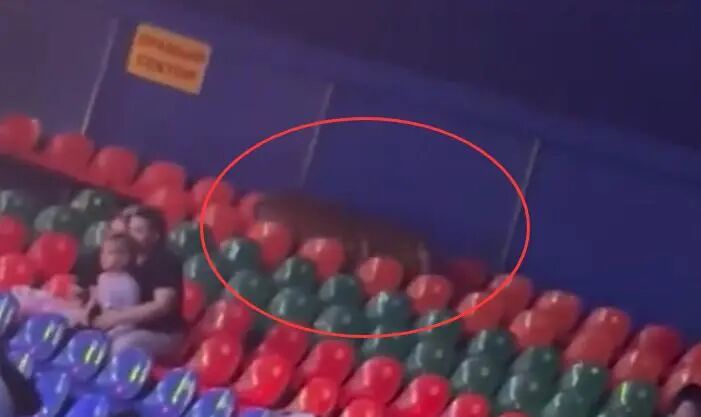 视频可见,相对于安静坐在座位上的观众,老虎则更显慌张,它不安地来回走动,试图把自己庞大的身体藏到椅子底下。