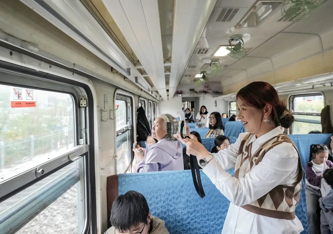 蔡阿姨坐环城绿皮时,就遇到有乘客带着自己的口琴、笛子演奏乐器,大家为演奏的老调子欢呼鼓掌,人与人之间的距离仿佛都在乐曲中逐渐拉近,这是在高铁上难以体验到的场景。蔡阿姨说,大家都希望环城绿皮火车继续运营下去。