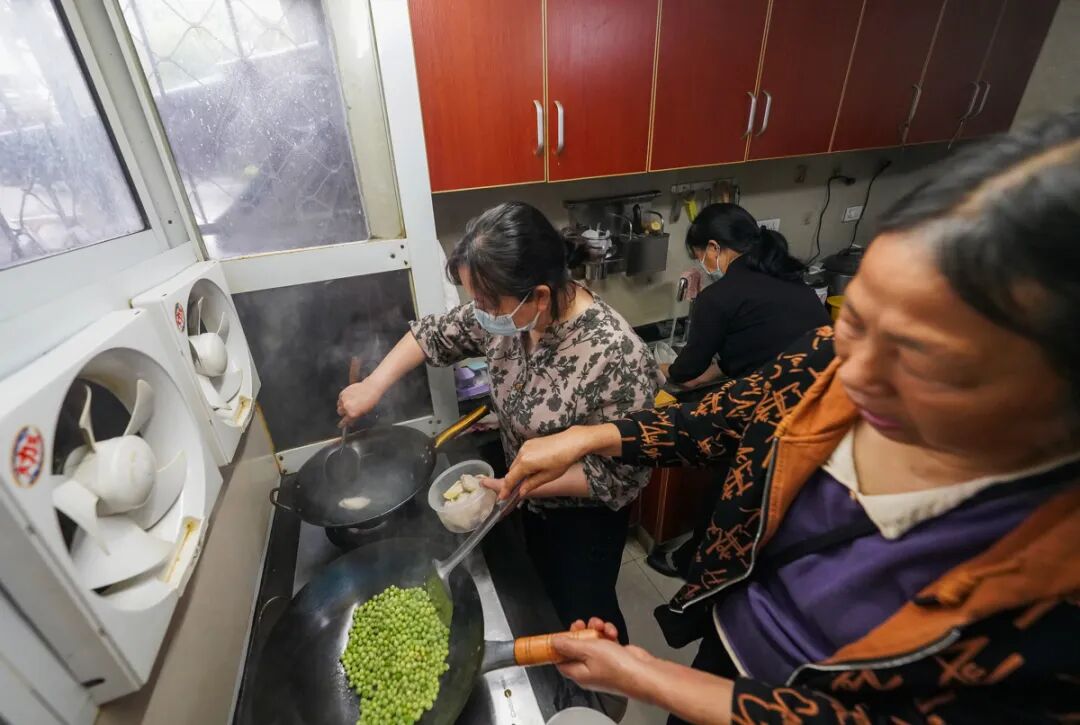 大家在一起边做饭边互相鼓气