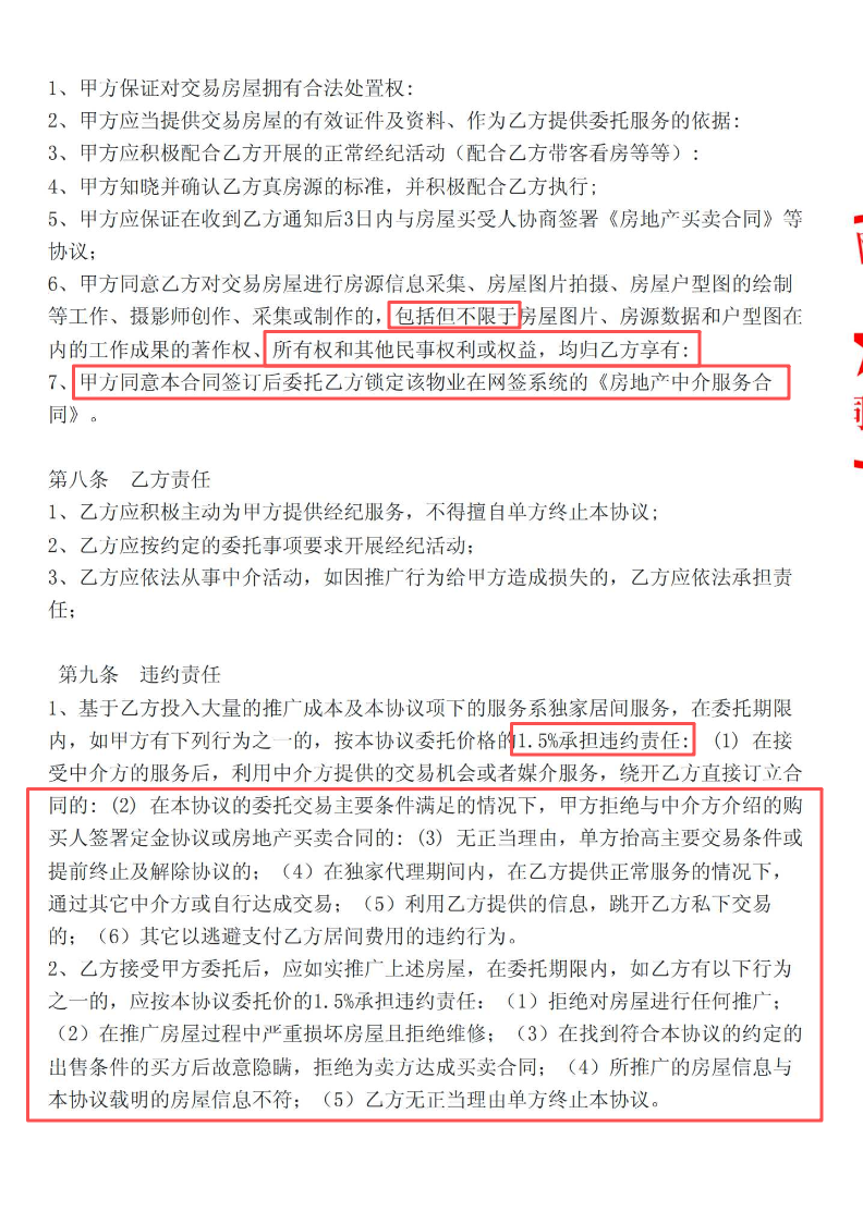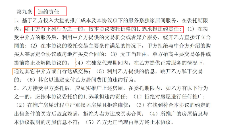 最恶心的是,他们的合同里藏着这样一条规定:在他们独家代理期间内,你跟别的中介成交,也是要付给他们1.5%中介费的。