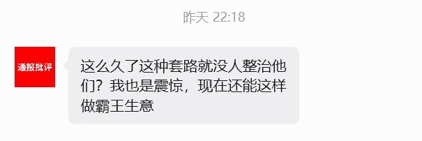 他很生气的跟我说:“这么久了,这种套路就没人整治他们?我也是震惊,现在还能这样做霸王生意?”。