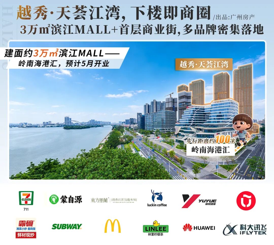 100米之隔的岭南海港汇,预计今年5月开业。作为海珠首个滨江商业MALL,规模与定位都颇具分量,华为、科大讯飞、麦当劳、东方墨兰、赛百味、miniso、711、愉悦健身等各类业态都已入驻。