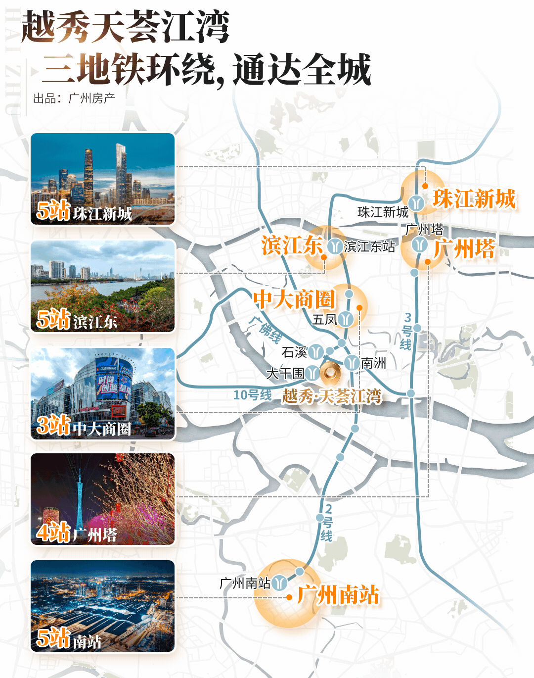 10号线大干围站已开,一轨串起西塱、中大、珠城;再加上2号线南洲站、广佛线石溪站,三条地铁围着转,四通八达。