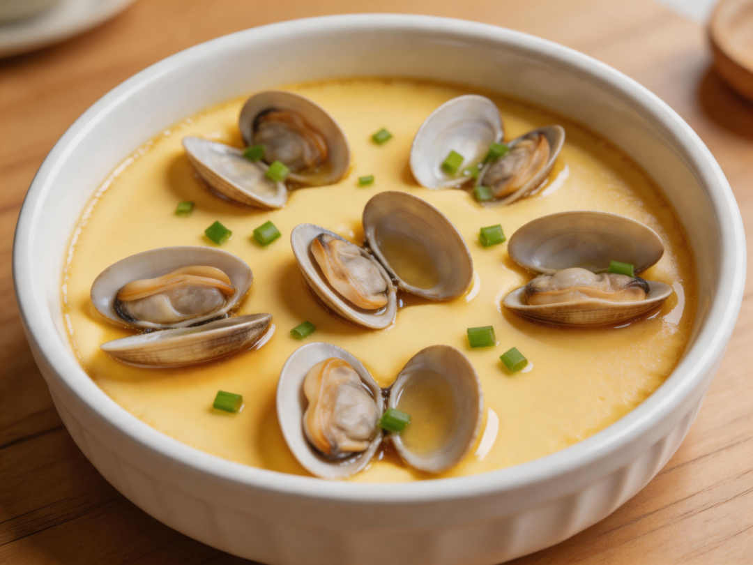 做法:蛤蜊肉洗净,焯水后放进蒸碗;打入鸡蛋,倒入少许绍酒和清水,加适量盐,充分搅打均匀。蒸锅上火烧上汽,放入蒸碗,大火蒸10分钟即可。