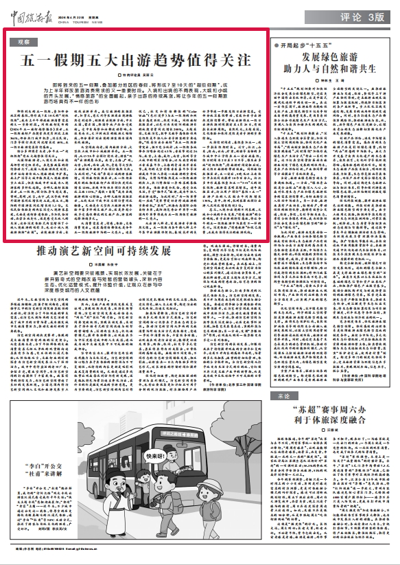 总之,入境和出境的不同表现,大城和小城的齐头发展,“情感旅游”的全面崛起,亲子出游的持续高涨,将让今年的五一假期旅游市场具有不一样的色彩。深度体验、“情感旅游”和悦己消费,正成为值得关注的旅游风向。