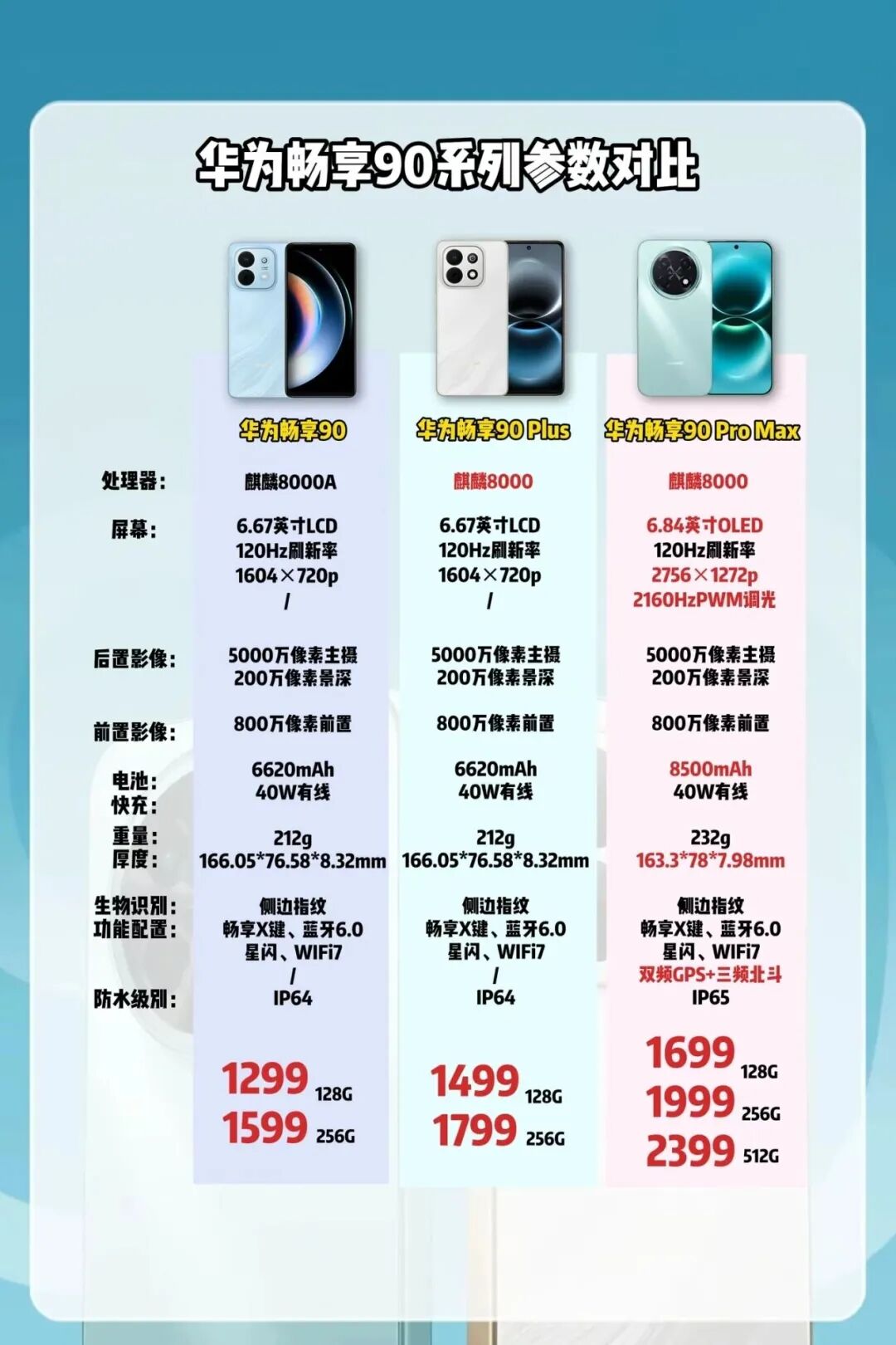 或者直接砍掉低价产品的时候,华为却在3月接连发布了三款极具性价比的新机,像畅享90起售价仅仅在1299元,Pro Max版本的起售价也不过1699元。