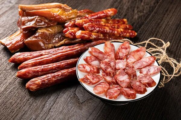 除了腌制蔬菜,腌制肉类也同样需要警惕。香肠、腊肉等腌制肉类制品,不仅盐的含量高,在配料表中也会经常能看到亚硝酸盐的身影。