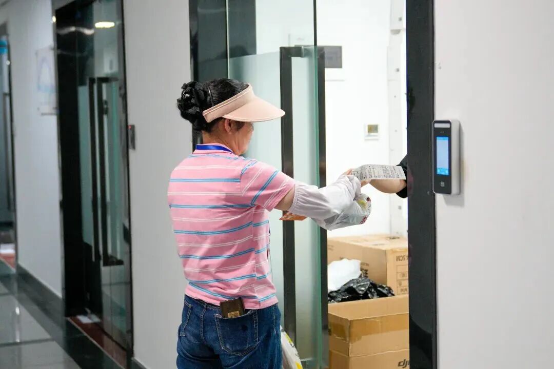于是,“跑楼大妈”应运而生。她们多是四五十岁、学历不高、无固定工作的女性,靠双腿和对楼宇的熟悉,接过骑手的“最后一棒”。