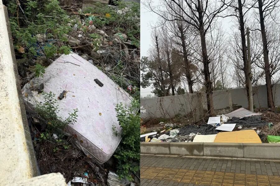 居住在沪太路周边的居民此前也在夜间的路边发现了不少大件垃圾。类似场景并非个例。闵行区莲花路地铁站出口不远处的桥下空间,原本的一小片绿地被一张布满污渍的旧床垫占据,周边散落着塑料袋、饮料瓶和纸屑,一到阴雨天气便积水发潮,逐渐演变为卫生死角。而在宝山区业绩路靠近锦秋路的交叉口,临近人行道的闲置空地更是成了大件垃圾的集散地,床垫、床架层层叠叠,越堆越高,远远望去宛如一个小型垃圾场。一名环卫工人告诉记者,这类垃圾体积大、分量重,清理一次往往需要多人配合,“刚清走没几天,又会有人丢”,反复清理成为常态,不过近期该地块已开始补种绿化,情况可能会有所缓解。