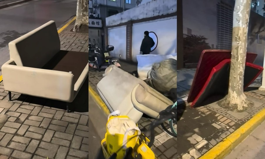 入夜,霓虹闪烁,城市一片繁华。然而,另一番景象也在夜色中悄然上演:破旧塌陷的床垫、弹簧外露的沙发、掉漆开裂的衣柜,被人趁着天黑抬到路边,随意丢弃在人行道、绿化带与闲置空地上。