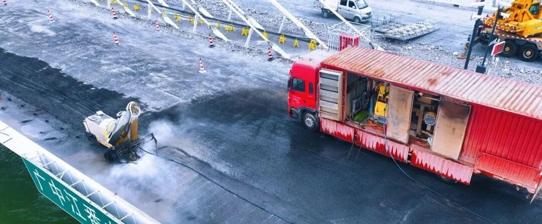 现在,工人们正在进行“水力凿毛”,相当于给桥面“搓澡”,只有搓干净了,才能让新老混凝土更好地“长”在一起。据工程师介绍,目前这项工序已经完成了近一半。