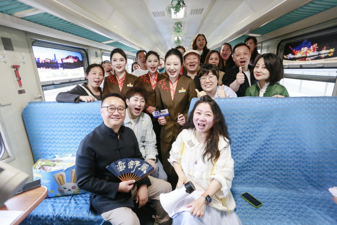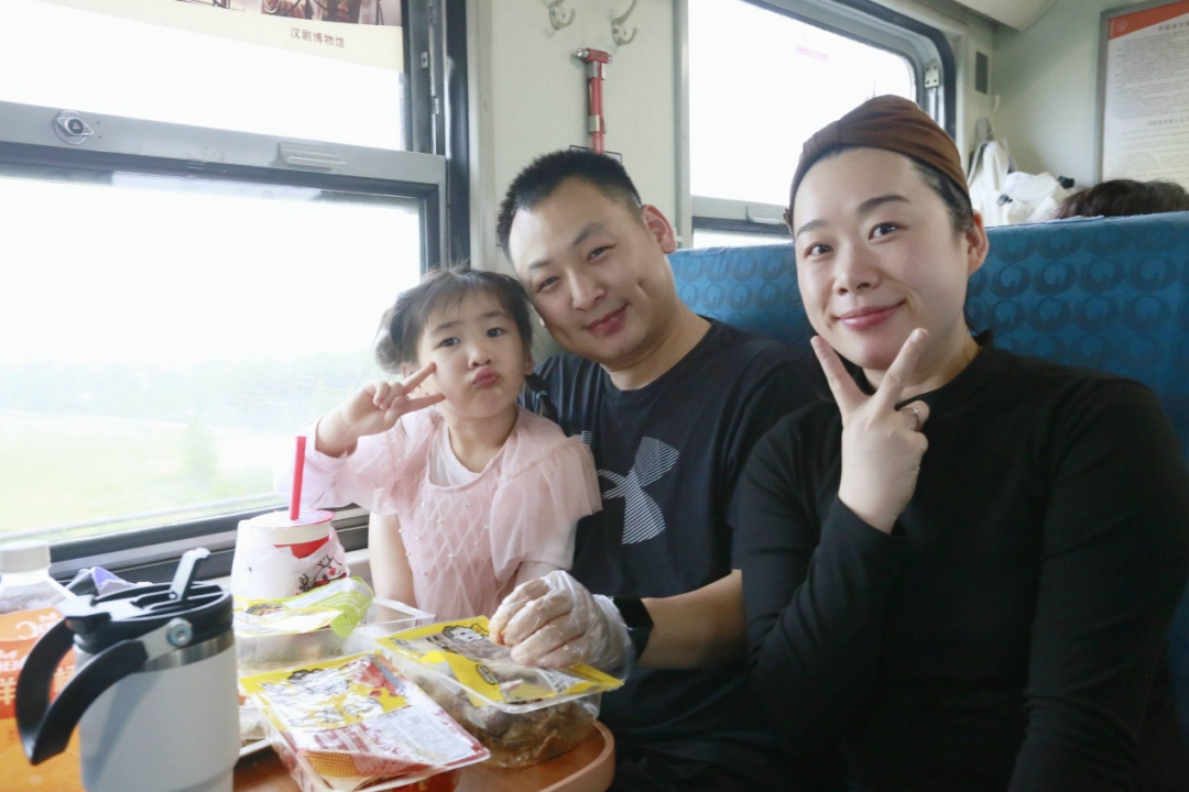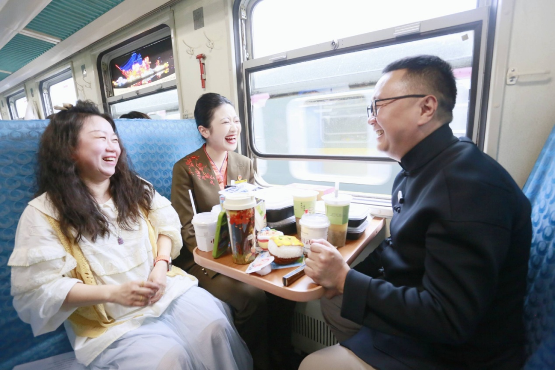 57岁的张先生坐在车厢里,激动得眼眶有点红。他是这趟环线列车的常客,更是《好吃佬》节目近20年的忠实听友。“我从2008年开车起就听陈哥讲武汉美食,每天必听。今天能在火车上见到他本人,还听他用地道武汉话报站、聊武汉文化故事,再看着窗外闪过的黄鹤楼、户部巷——就像跟老朋友一起逛家乡。”