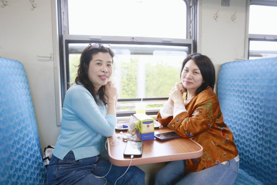 楚天交通广播忠实听众田女士说,这种绿皮车的慢节奏,和方言广播里的烟火气撞在一起,一下子把她拽回了三十年前:“我们年轻那会儿,坐绿皮车就是为了赶路——硬座、大包小包、挤得脚不沾地。那时候车厢里也经常有广播,但都是冷冰冰的机械报站。今天不一样了,6块钱,慢慢晃,窗外的武汉还是那个武汉,可车厢里有了陈哥和乐乐一起咵天,送了我们烧烤虾子和咖啡、热干面玩偶,太欢乐了!希望这样的活动多办,让年轻人也听听正宗的武汉话,知道我们这座城市的故事。”