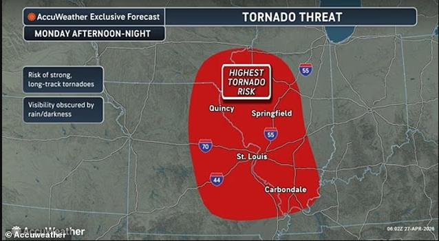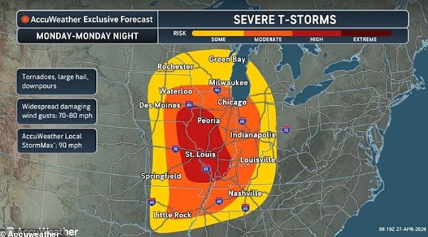 气象部门最新预警显示,一轮已经在南部造成多人死亡的强风暴系统,正在向中西部推进,预计将在今天(周一)下午到夜间影响至少12个州,包括伊利诺伊、密苏里和爱荷华等地。 这三个州,被认为是本轮风暴中风险最高的区域,尤其是圣路易斯一带,正处在系统最强的位置。 从周一下午开始,这一轮天气将逐渐增强,并可能持续整个夜间。 气象人员预计,风暴中会出现所谓的“超级单体雷暴”(supercell),这类雷暴更容易发展出龙卷风。一旦形成,风速可能超过130mph,达到EF3级甚至更强,足以摧毁房屋、严重破坏大型建筑。 除了龙卷风,这一轮天气还可能带来多种危险情况: 气象解释称,风暴中的上升气流非常强,可以把冰雹长时间“托”在云层里,让它不断结冰变大,最终可能长到棒球大小,足以砸坏车辆和屋顶,甚至击碎玻璃。 需要特别注意的是,今晚的风险更高。 气象专家提醒,夜间龙卷风更危险,因为能见度低,很多人已经入睡,再加上有些龙卷风会被暴雨包裹,很难被肉眼发现。 过去一周,美国中部和南部已经多次遭遇强天气。多个地区报告了超过30个龙卷风和200多起冰雹事件。 就在周末,密西西比和德州也有龙卷风掠过,一些房屋屋顶被掀,居民区被破坏,已有人员伤亡。 目前,包括芝加哥、印第安纳波利斯、密尔沃基、纳什维尔和路易斯维尔在内的多个城市,都处在中等风险范围内。 这些地区从下午2点到4点左右开始,可能陆续出现强雷暴,并持续到夜间。 气象人员指出,这轮天气之所以强,是因为几个条件同时出现: 来自南方的温暖湿润空气,被不断输送到中西部;同时高空存在强风和冷空气,两股气流发生冲突;再加上明显的温差和不稳定大气结构,正好形成有利于龙卷风发展的环境。 如果你在伊利诺伊、密苏里、爱荷华一带,尽量提前做好准备,保持手机预警开启,确认好避险位置。 因为这种天气,一旦预警响起,留给你的时间,可能只有几分钟。