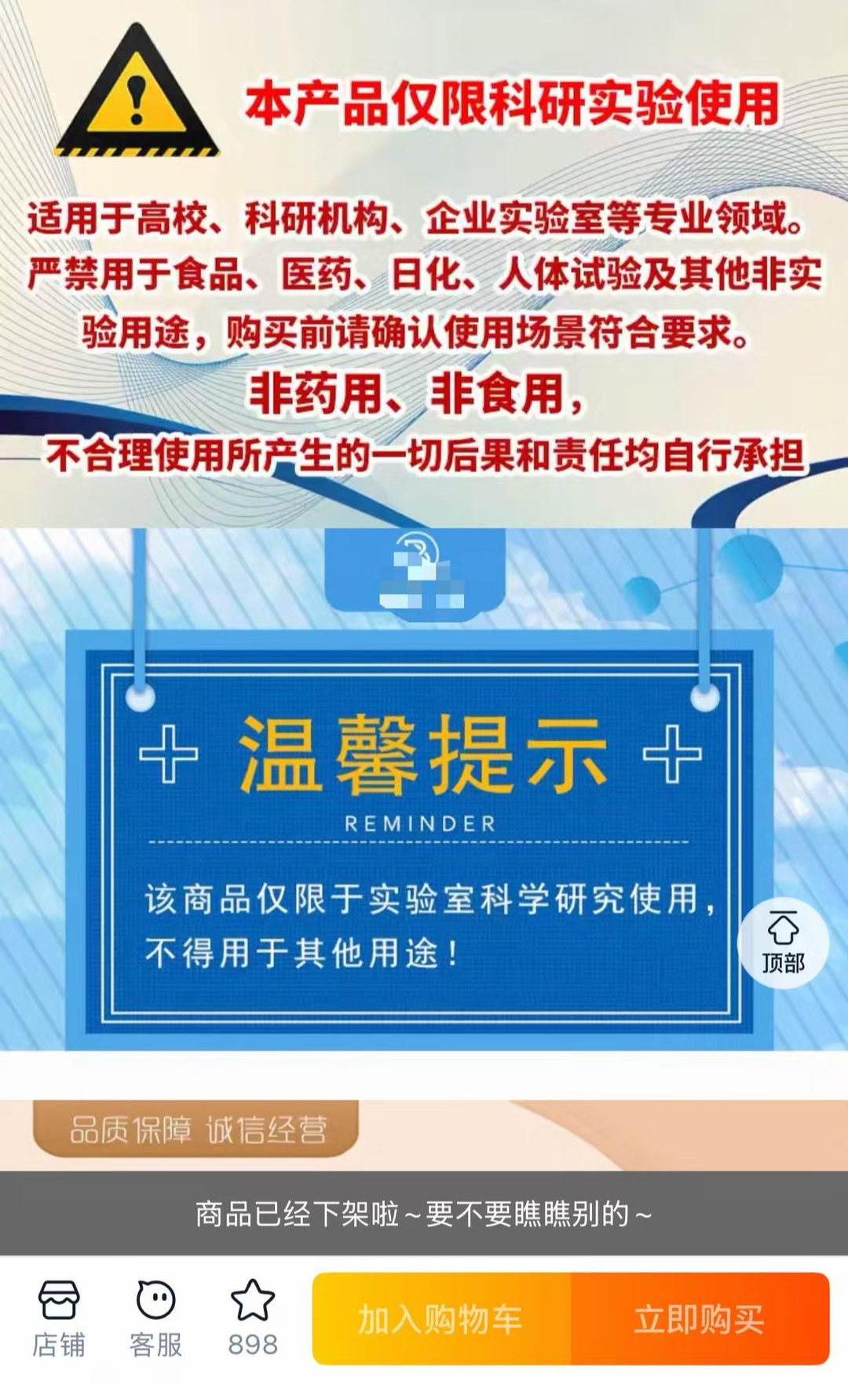 ▲产品提示限实验使用,目前多家电商平台已下架此产品
