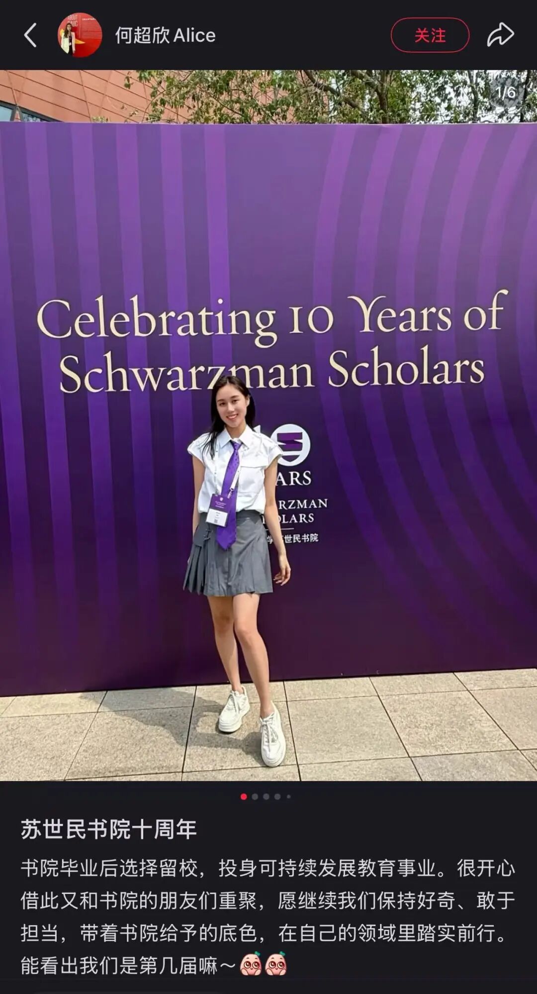 何超欣在社交平台发帖称:书院毕业后选择留校,投身可持续发展教育事业。很开心借此又和书院的朋友们重聚,愿继续我们保持好奇、敢于担当,带着书院给予的底色,在自己的领域里踏实前行。