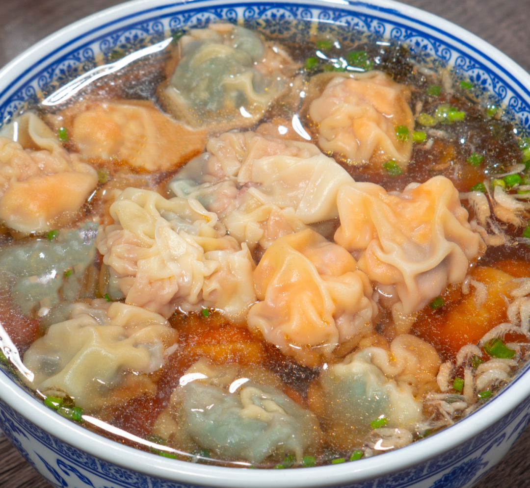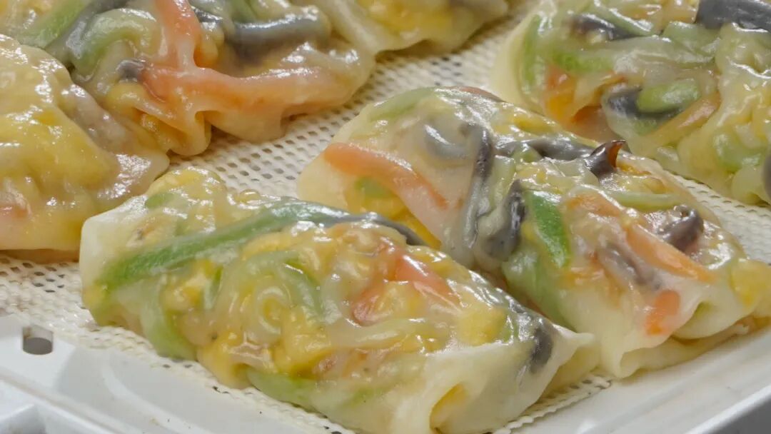 咬开里面是玉米、胡萝卜、豆角等,你们做的时候,可以根据自己的喜好随便加配菜。 我喜欢调个凉拌汁倒进去搅合搅合,吃起来更过瘾。 第五道:馄饨皮鸡肉卷。 点击下图查看详细做法 把胡萝卜、香菇、鸡肉,把它们切碎加料搅拌均匀,然后用馄饨皮裹住,上锅简单蒸一蒸, 搞定。馄饨皮绵软,里面的馅料香嫩有韧性, 好吃不怕胖。 第六道:大虾锅贴 点击下图查看详细做法 底面是酥脆,面皮软韧,馅味鲜美,就是有点点贵。 我直接下了猛料,一个锅贴一只虾,肉感满满,口感丰富,色泽黄焦,香入灵魂。 第七道:皮蛋馄饨 点击下图查看详细做法