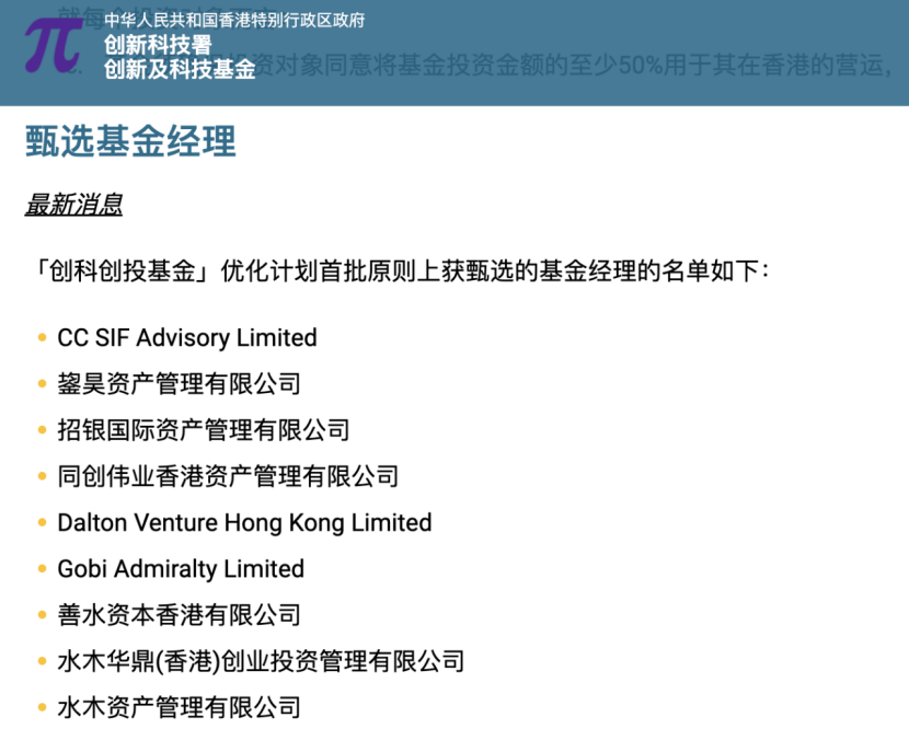 投资界-解码LP获悉,香港创科创投基金优化计划下,首批原则上获甄选的9家基金管理人名单公布——