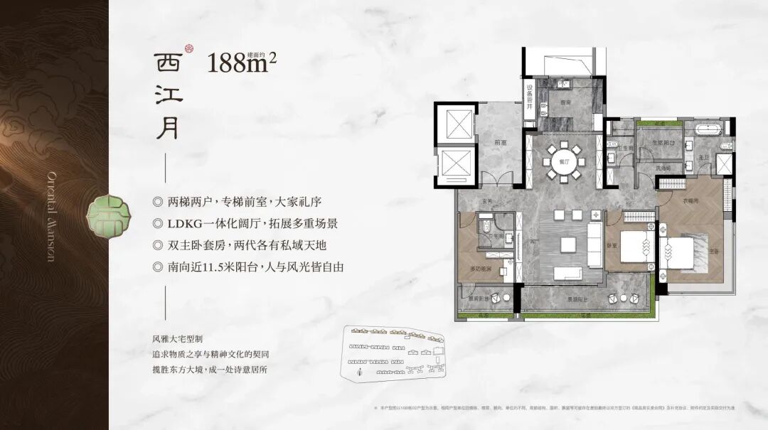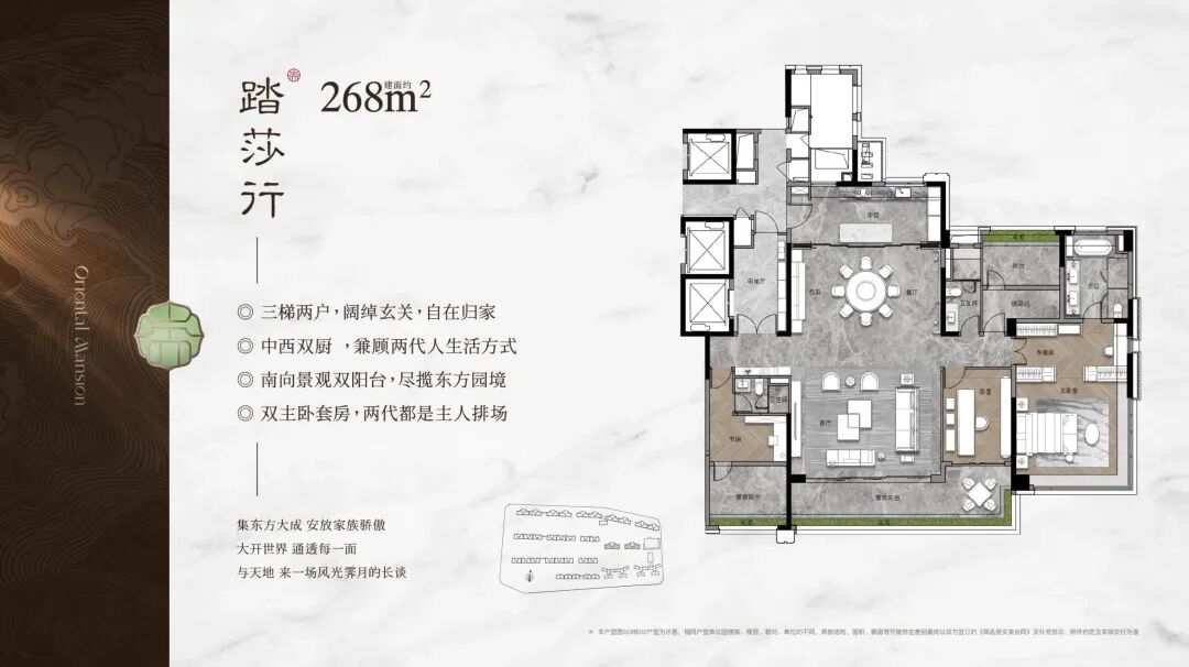 面积最大的建面约268平,配有专门的保姆电梯,有更阔绰的双套房设计,是终极改善之选。