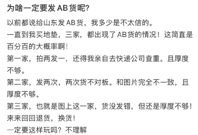 却只字不提货不对板和AB货的问题。
