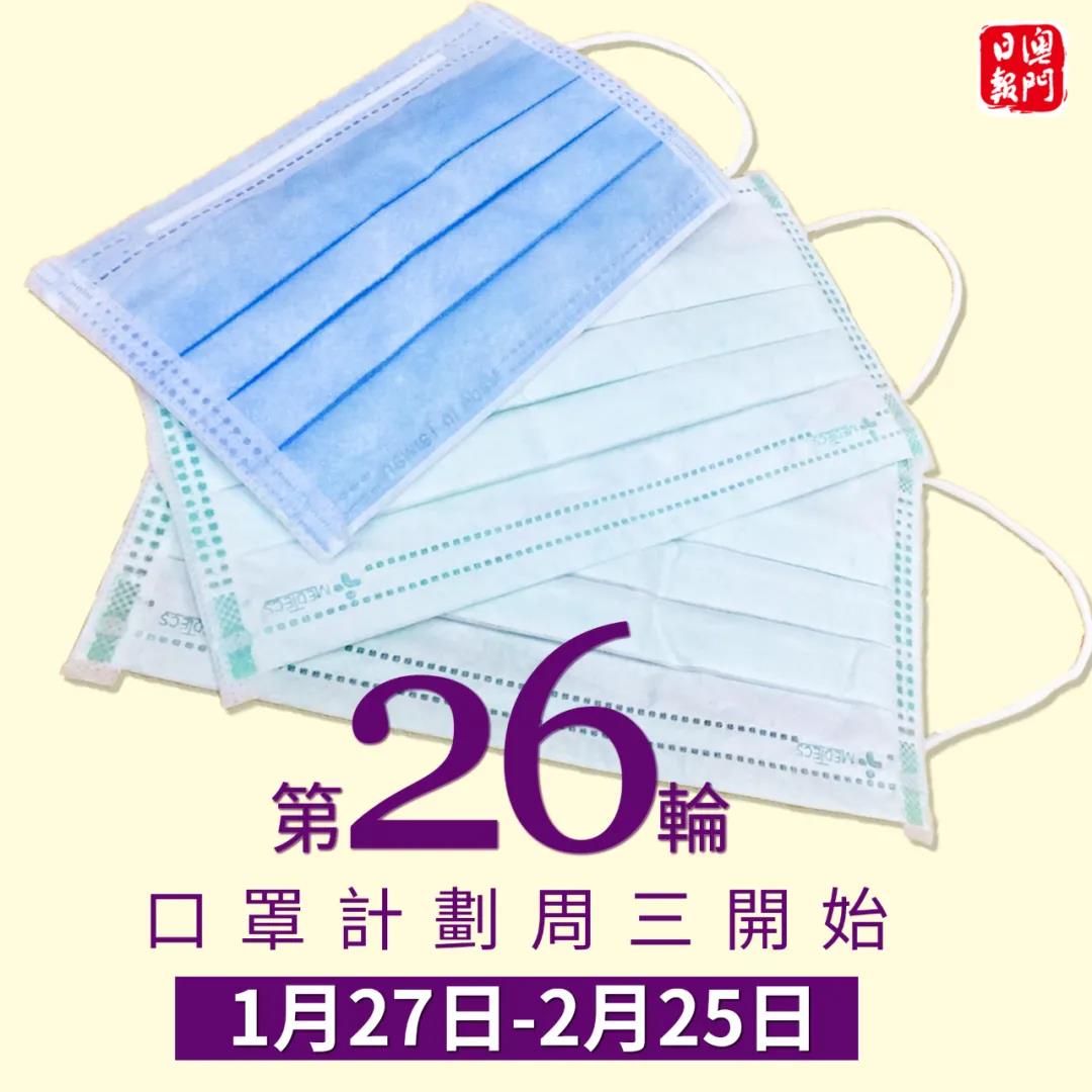 第26轮保障口罩供应计划将于27日(星期三)至2月25日销售,销售对象、方式、地点不变。上一轮计划共售出890万个口罩,累计已售出1.8亿个口罩。