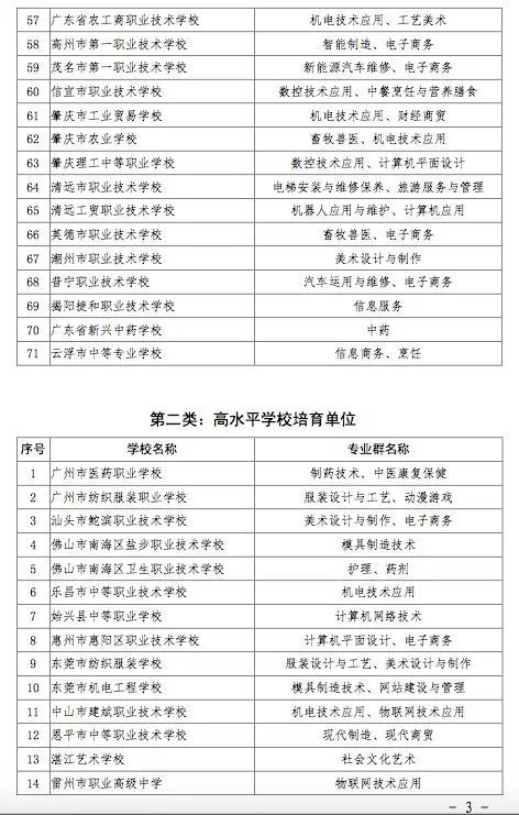 《关于广东省高水平中职学校拟建设、培育单位名单的公示》,