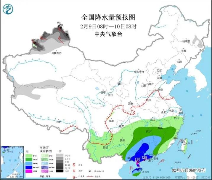 预计,2月9日-10日,广东省自西向东先后有大雨到暴雨,局地大暴雨,雨时白天气温明显下降;春节假期,广东省无强冷空气和强降水过程,天气总体平稳。具体预报如下: