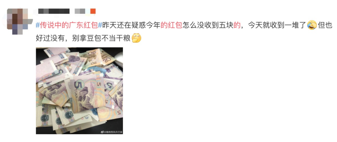 广东人发/收的红包面额 大多都是1元、5元、10元不等 50元都可以算“巨款”了 很多人都疑惑 为什么广东人发红包这么“抠”呢? 其实,广东人称红包为“利是” 寓意更加重要 ↓ ↓ ↓ 广州民俗文化研究所所长-饶原生:压岁钱融入广府文化后,更多的是一种好意头,广府人派红包不在意多少钱,礼轻情意重,这是一种谢意的送达。 有网友就表示: “广东红包和北方红包的差别, 这差距也太大了吧” 看看别人的红包 再看看你的红包 还有网友表示: 简直是红包界的一股清流~ 今年过年你是发红包还是收红包? 一般都有多少? 来源于深圳特区报、城事特搜、澎湃新闻、新浪微博,如有侵权请联系删除 |