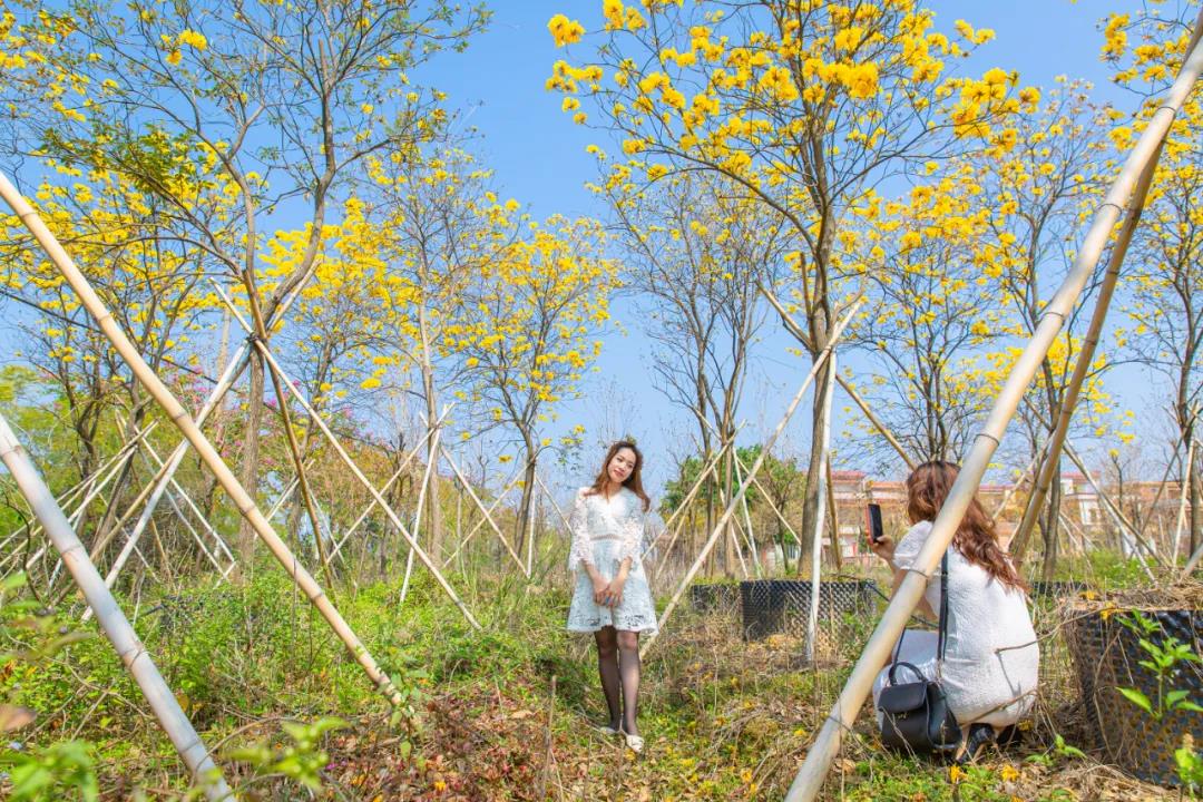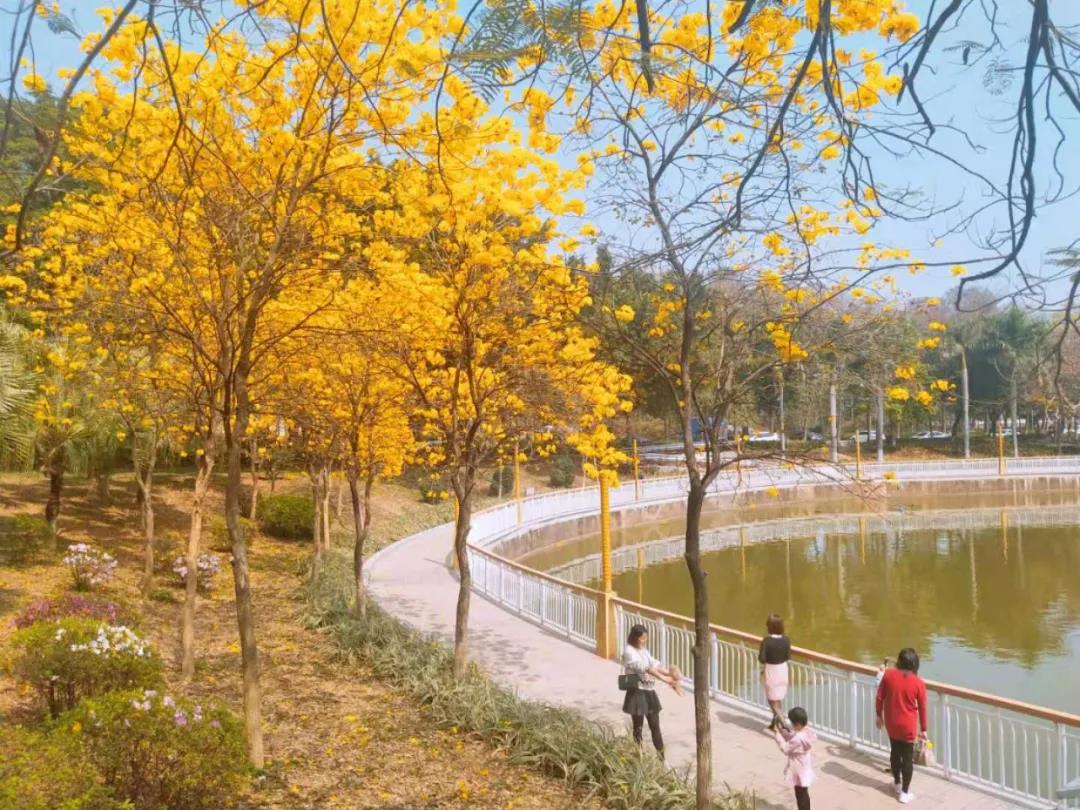 春日暖阳来临,一簇簇黄花风铃木怒放,迎来最佳赏花期!佛山的春天,大抵是从一场“盛大的花事”开始…… 春风送暖花千树,园中戏蝶时时舞。黄金风铃木在王借岗森林公园绽放,美好就藏在这里的每一帧画面里。 今年春来早,往年三四月才开放的黄花风铃木,此时正在西樵山环山花海尽情绽放,供游客免费观赏! 千灯湖畔阳光微风正好,黄花风铃木整齐林立,与湖水交相辉映,绘就一幅春日图景。 在梦里水乡百花园,黄花风铃木美得倾城,抬头所至,皆是金灿。 南海丹灶仙湖湖畔,数千棵黄花风铃木同时盛开之时,花海延绵3公里,美到犯规! 在三龙湾游船码头的黄花风铃木已到最佳赏花期,微风吹过,金黄色的叶子随风摇摆,如同仙女一般,翩翩起舞。 顺峰山公园 顺峰山公园内的旧良逢路、伏波桥对面、湿地花海、太平山麓、湖心岛、三角停车场、九曲桥附近都是赏黄花风铃木的好去处。黄花风铃木迎着和煦的春风惊艳绽放,美轮美奂。