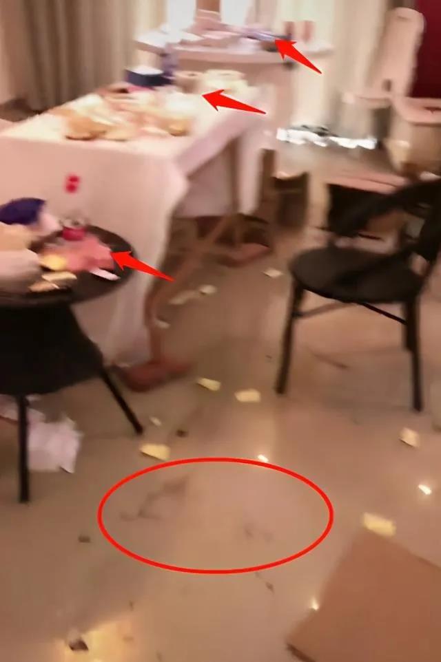 随即拍摄者又来到别墅里的“重灾区”客厅: