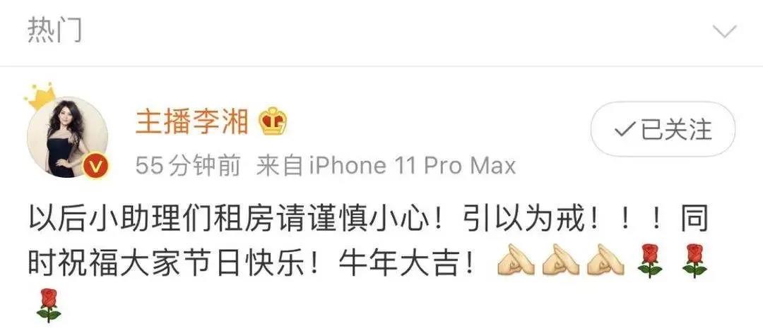 2月23日中午12点,记者联系到了李湘。李湘传来了直播团队的三点声明: