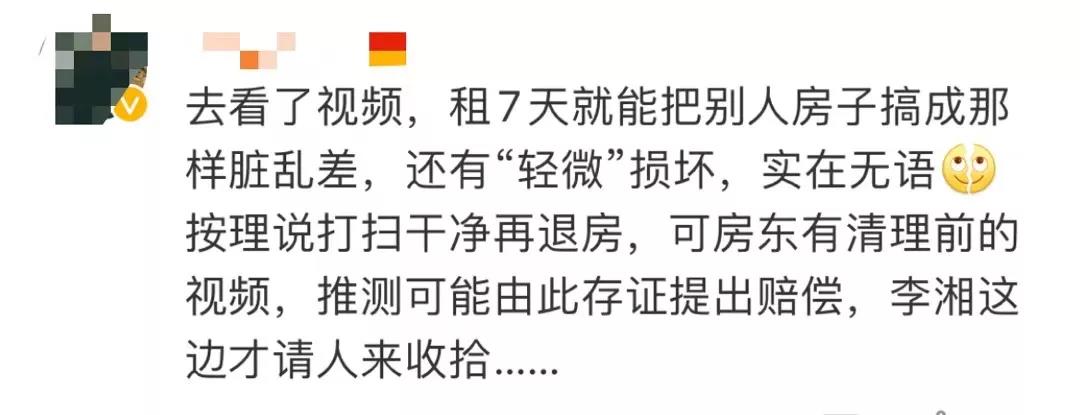 视频曝光之后,不少网友都惊讶明星的素质,有人猜测租这个房子的人就是李湘,因为