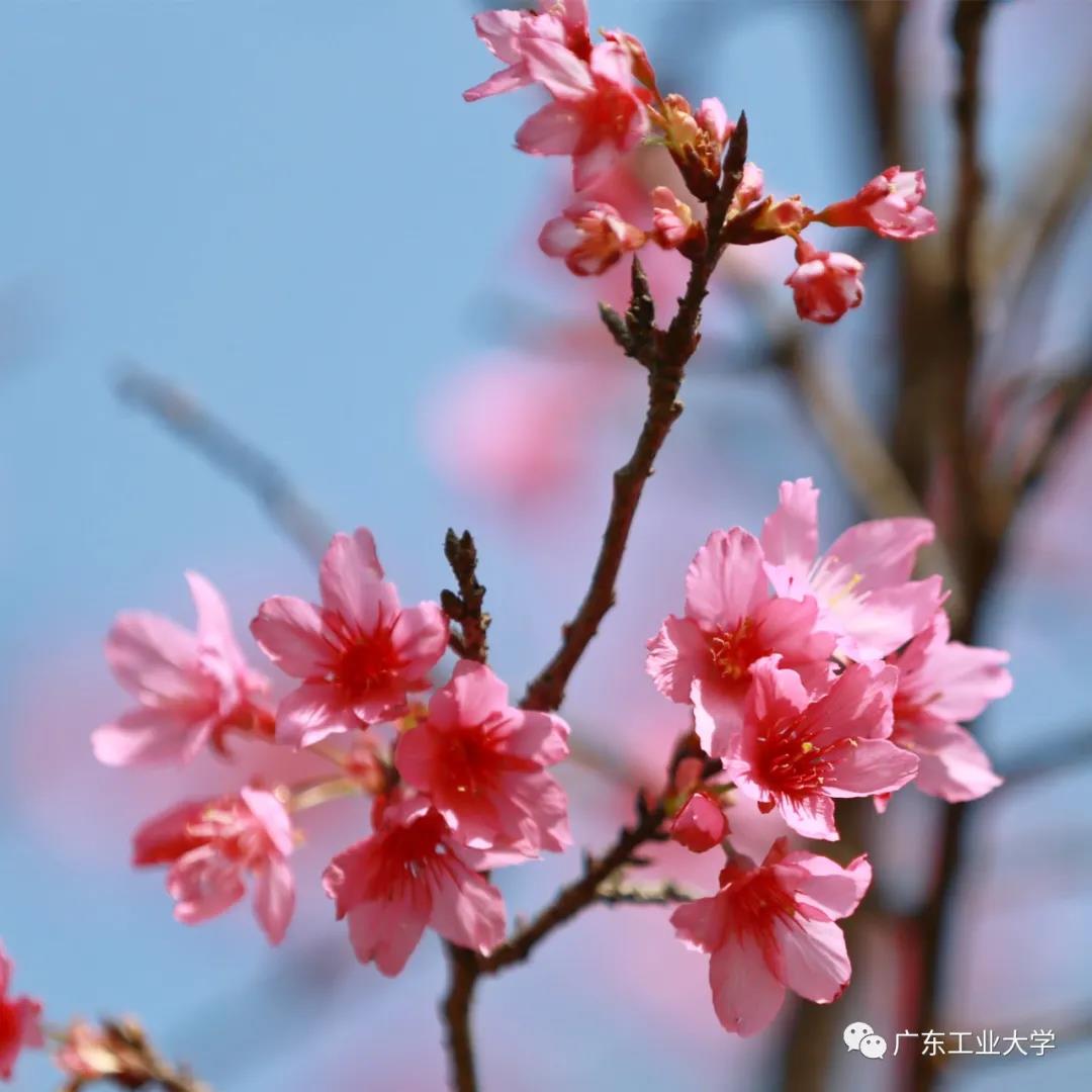 珠江公园↓  2月1日,记者在珠江公园百花园看到,园内樱花已经盛放,粉色的花瓣随风摇曳,不断吸引着蜜蜂在花间穿梭。这边厢樱花已开满树,枝头上挂满了点点红樱,另一边厢则满树含苞,花苞正待放。赏花宜趁早,街坊们不妨约上小伙伴来这樱花树下“醉”上一回。广东工业大学↓
