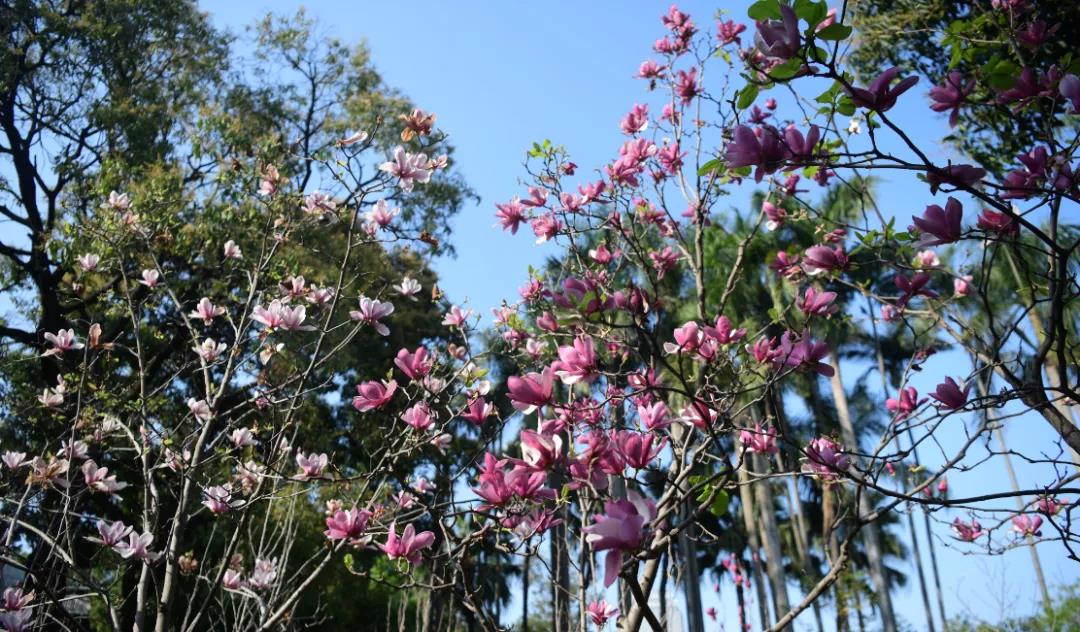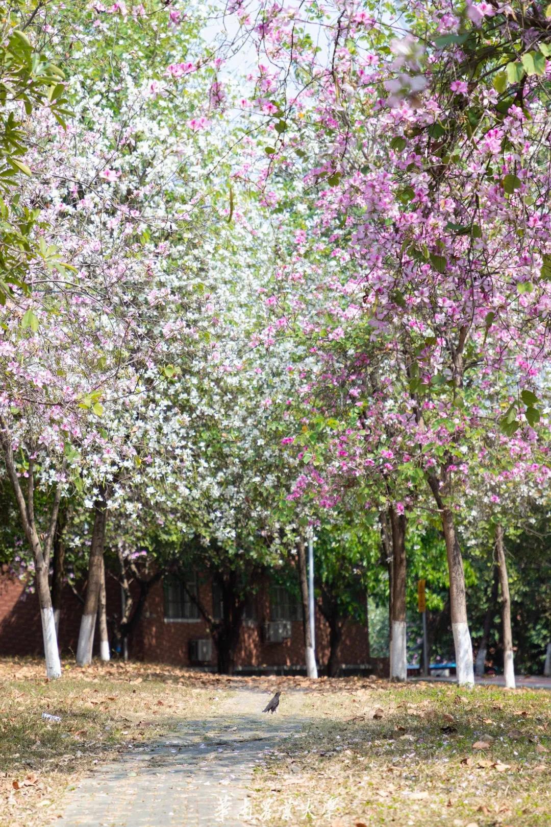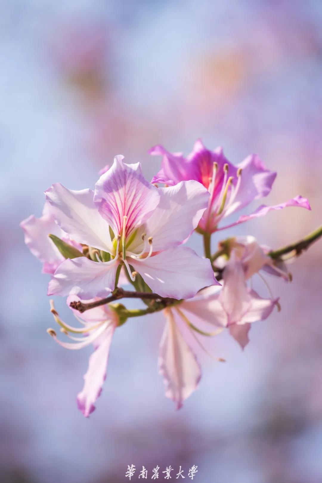 2月的花城格外温暖 华南农业大学内的宫粉紫荆花已经悄然绽放 粉与白的紫荆深浅交织 灿烂繁花构成一片片粉色海洋 阳光斜照 千树万花透着明媚的光 一派春暖花开、生机勃勃之景展示在眼前