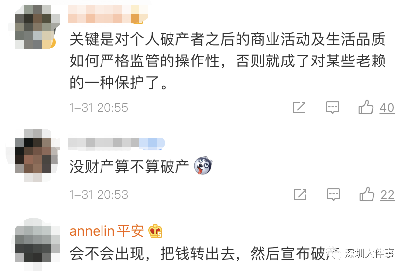 重要消息!全国首部,深圳个人破产条例来了 今天开始施行 今天(3月1日),我国首部个人破产法规《深圳经济特区个人破产条例》(简称“条例”)开始施行。同日,全国首家个人破产事务管理机构——深圳市破产事务管理署挂牌成立,挂牌仪式在深圳市司法局举行。 深圳市委副书记、市人民政府市长、党组书记陈如桂,市人大常委会主任骆文智共同为深圳市破产事务管理署揭牌。市委常委、市人民政府党组成员田夫致辞。 与此同时,南都记者了解到,今天深圳市中级人民法院召开专题新闻发布会,会上深圳法院“破茧”个人破产综合应用系统(简称:破茧系统)正式上线运行。据悉,破茧系统实现了破产业务办理“无纸化”等多项功能,将为破产审判业务提供强有力支撑。 深圳市破产事务管理署挂牌成立 意味着什么?有什么职责范围? 《条例》又对市民有什么影响? 一起来看看! 国内首部个人破产法规实施 首个破产管理机构成立 田夫在致辞中表示,国内首部个人破产法规实施、首个破产管理机构成立,是全面贯彻落实上级决策部署,加快完善社会主义市场经济体制的重要举措,是具有广泛影响力的法治事件。 当前,世界上一些市场经济比较成熟的国家和地区都建立了个人破产制度,世界银行亦将“办理破产”情况作为营商环境评价体系的一级考核指标。 深圳先行一步,于2020年制定出台了《深圳经济特区个人破产条例》。该条例率先补足了市场主体救治的制度空白,在个人层面完善了市场主体有序退出机制,建立起“法院裁判、机构管理、管理人执行、公众监督”四位一体的破产办理体系,其中组建“深圳市破产事务管理署”是一大亮点。 深圳市破产事务管理署 又有哪些职责? 主要负责个人破产管理人管理、实施破产信息登记和信息公开制度、提供破产事务咨询和援助服务、建立健全政府部门办理个人破产事务的协调机制。 图片来源:IC photo 对于条例 不少网友还有疑问 ▽ 小编为大家解答! ▼ 什么人可以申请破产程序? 恶意逃债的“老赖” 并不在《条例》适用范围 《条例》保护债务人,在保护创业者,提供“东山再起”的机会的同时,也为个人商事主体提供平等破产保护。 救济是个人破产制度最本质的意义和属性。所以,寻求个人破产保护诚实成为首要要求。 从一定意义上讲,《条例》为诚实而不幸的债务人提供了一种可期待的保障,所以恶意逃债的“老赖”并不在其适用范围。 《条例》主要从三个方面 限制债务人行为 一是限制消费行为,规定了八种禁止消费行为,主要参考《最高人民法院关于限制被执行人高消费的若干规定》; (一)乘坐交通工具时,选择飞机商务舱或者头等舱、列车软卧、轮船二等以上舱位、高铁以及其他动车组列车一等以上座位; (二)在夜总会、高尔夫球场以及三星级以上宾馆、酒店等场所消费; (三)购买不动产、机动车辆; (四)新建、扩建、装修房屋; (五)供子女就读高收费私立学校; (六)租赁高档写字楼、宾馆、公寓等场所办公; (七)支付高额保费购买保险理财产品; (八)其他非生活或者工作必需的消费行为。 二是限制职业资格,自人民法院宣告债务人破产之日起至依照本条例免除债务人未清偿债务之日止,债务人不得担任上市公司、非上市公众公司和金融机构的董事、监事和高级管理人员职务。 三是限制借贷额度,进入破产程序后,债务人借款1000元以上或者申请等额信用额度时,应当向出借人或者授信人声明本人破产状况。 图片来源:IC photo 此外,法院裁定个人破产后,任何时候发现其有欺诈行为,意图赖账的,人民法院都可以撤销之前的裁定,并对其重新清算。不过,条例建立了鼓励提前清偿债务制度,三种视为考察期届满的情形,即债务人主动清偿剩余债务并达到一定比例的,可以提前结束考察期。 《条例》将从4个方面保护债权人 值得一提的是,《条例》将从4个方面保护债权人,包括—— 1、保护债权清偿,限制破产滥用。 2、规定不予免责的债务,保护特殊债权人。 3、以公平清偿为基础,优先保护特殊债权人。 4、保障债权人的参与权与监督权。 最后总结一下 对个人和社会而言 个人破产制度从多个角度 保障公民基本权利、提升社会整体公共利益 ▼ ✍ 通过完善的制度设计,能够有效降低单一债权实现的成本、高效实现资源再分配; ✍ 能够防止无限债务追索引发的恶性事件,减少社会不稳定性因素; ✍ 能够让诚实且不幸的债务人获得经济重生,让恶意逃废债的债务人得到法律制裁,形成以信用为核心的社会行为激励约束机制,有力推动社会信用体系的完善。 来源于深圳大件事,转载目的在于传递更多信息,并不代表本网站赞同其观点和对其真实性负责。如涉及作品内容、版权和其它问题,请在后台联系微信,我们将在第一时间删除内容! |