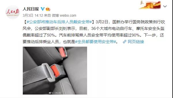 : 近日,国新办举行国务院政策例行吹风会,公安部副部长刘钊表示,下一步,要推动后排乘坐人员,也就是全员都要使用安全带!据公安部交管局调查研究显示: 不系安全带已成为道路交通致死的第三大原因,仅次于超速行 ...