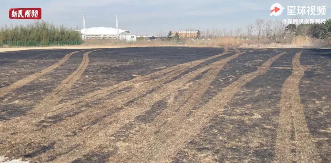 大片草坪被烧成灰烬