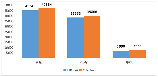 2020年,全市市场监管部门在市委市政府和省局的坚强领导下,以“放心消费”行动建设工作为中心,聚焦民生关切,围绕人民群众在“衣、食、住、行”领域的消费痛点、堵点问题,依法履行法定职责,积极开展各类消费维权工作,及时处理消费投诉举报,充分保护消费者合法权益,营造安全放心消费环境。 一、总体情况 2020年,全市市场监管部门共受理消费投诉举报47364件,同比增加4.45%。其中,受理消费者投诉39806件,同比增加 3.78%;举报7558件,同比增加8.13%,按时转办率100%,为消费者挽回经济损失7400多万元。 二、投诉受理情况 2020年共受理消费者投诉39806件,同比增长3.78%;其中商品类投诉19180件,同比增加0.22%;服务类投诉20626件,同比增加7.32%。 (一)商品类投诉中,家用电器、食品、通讯器材、日用百货、交通工具位居前五,投诉量分别为4380件、3075件、2580件、2131件、1135件,共计占商品类投诉总量的69.35%。 (二)服务类投诉中,居民服务、电信服务、住宿服务、卫生保健服务、教育培训服务位居前五,投诉量分别为2552件、2240件、2003件、1953件、1913件,共计占服务类投诉总量的51.69%。 三、举报受理情况 2020年共受理消费者举报7558件,同比增加8.13%,其中违反广告管理法规1334件,违反消费者权益保护法规543件,违反产品质量管理法规247件,违反企业、个体私营登记管理法规174件,违反反不正当竞争法规157件,传销及违法直销56件,违反商标管理法规26件,违反合同管理法规12件,违反市场监督管理法规5件,其他举报5004件。 四、消费热点分析 涉疫用品投诉举报 主要集中在第一季度 受去年新冠肺炎疫情的影响,自年初起涉疫情相关的消费投诉事项激增,涉疫情投诉问题主要集中在四个方面:1.口罩供不应求,少数商家趁机哄抬物价、以次充好。2.酒店、餐饮、旅行社等单位经营者在疫情初期未能及时跟进落实相关订单退改、退票退费等。3.疫情期间一些商家受疫情影响直接停止营业,以美容美发、健身、餐饮等预付式消费场所比较集中,导致较多消费者追讨预付卡内的余额。4.春节期间叠加疫情影响,部分蔬菜、猪肉等季节性农产品、疫情相关紧缺商品价格上涨较快,增加消费者生活成本,引发消费者投诉。经过不断加大监管和执法力度,严厉查处和曝光消费领域各种违法经营行为,以及商家响应落实国家相关退票、退款政策,涉及疫情的各类消费投诉逐步下降,市场经营秩序整体趋于平稳。 家用电器、通讯器材投诉问题 依然突出 家用电器和通讯器材共受理6960件,占商品类投诉总量的36.29%。其主要体现在以下方面:1.产品质量出现问题,商家厂家不履行三包义务。2.售后服务人员态度不好,维修质量水平不高。3.价格纠纷和物流问题。 食品问题类投诉时有发生 2020年共受理食品类投诉和餐饮类投诉4183件,其中食品类投诉3075件,占商品类消费投诉总量16.03%,餐饮类投诉1108件,占服务类消费投诉总量5.37%。主要集中在以下方面:1.消费者怀疑购买到劣质或食用过期变质食品,食品中混有异物,食用后出现身体不适。2.餐饮环境卫生差,怀疑非法添加,没有明码标价等。 涉及预付式的消费投诉高发 2020年共涉及预付式的消费投诉3649件,相比去年上升24.03%。由于疫情影响,今年服务类商家经营不善导致资金链紧张、迁移服务地址、更改经营者甚至关闭等等各种情况,造成商家未能及时提供服务、未能退款、消费者接受服务不便利等等矛盾因素,多发在教育培训、美容美发、健身、汽车4S店等领域,往往引起消费者群体投诉,要求退货、退款、更改服务时间地点等等。而这些消费者的主要诉求是民事诉求,行政部门难以解决,引起消费者的不满反复投诉。如27名消费者反映他们在某国际美发店办理了会员并充值,但商家不再营业,无法联系,要求相关部门协助退还卡内余额(上百到几千不等)。执法人员迅速介入,但商家负责人电话不通、行踪成谜,无法开展调解工作,执法人员及时告知消费者相关情况,并引导消费者通过法律途径维权。 房地产市场存陷阱, 商品房买卖争议较多 1.商品房销售不规范、购房者受误导。2.房产交房时与广告宣称不一致。经营者在销售之初往往对房地产的基本情况做模糊介绍,对消费者产生心理误导,导致交房时发生纠纷。3.房产促销活动仍需规范。体现在房地产促销中,采取交付意向定金、打折优惠等方式,促使消费者在没有全面知悉合同具体内容的情况下,就草率签字,极易引发涉及定金退还方面的合同纠纷。 广告违法行为的举报占比较高