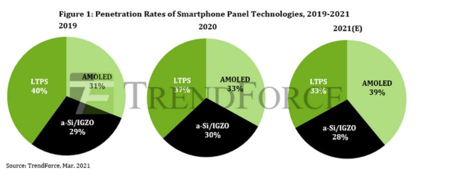 外媒 Neowin 报道,研究机构 TrendForce 的最新数据显示,由于 AMOLED 在价格具有竞争力的中端市场的使用越来越多,今年市场上 AMOLED 智能手机的数量将达到 39%。其发现,a-Si LCD 机型在中低端市场仍有需求,但 LTPS LCD 机型的市场份额在持续下降。 获悉,报告称,2019 年,LTPS LCD 渗透率为 40%,AMOLED 为 31%,a-Si LCD 为 29%。2020 年,AMOLED 和 a-Si LCD 分别增长到 33% 和 30%,而 LTPS LCD 下降到 37%。到了 2021 年,估计 LTPS LCD 会继续下降到 33%,AMOLED 会大跃进到 39%,而 a-Si LCD 会稍微回落到 28%。 TrendForce 指出,自 2020 年下半年以来,面板供应商一直在积极为其刚性 AMOLED 面板定价,客户订单也因此增加。该机构表示,随着时间的推移,它预计 AMOLED 机型将 " 逐渐吞噬 "LTPS LCD 机型在中端和高端中端市场的市场份额,导致该技术在低价位的设备上被采用。分析师还预计,目前被应用在折叠屏手机上的柔性 AMOLED 面板将继续被订购到高端和旗舰领域的手机上。关于智能手机销售的话题,TrendForce 表示,尽管生产受到多种因素的挤压,但随着越来越多的人接种疫苗并开始恢复到疫情前的生活方式,我们将看到 2021 全年对智能手机的需求增加。 来源于IT之家,转载目的在于传递更多信息,并不代表本网站赞同其观点和对其真实性负责。如涉及作品内容、版权和其它问题,请在后台联系微信,我们将在第一时间删除内容! |